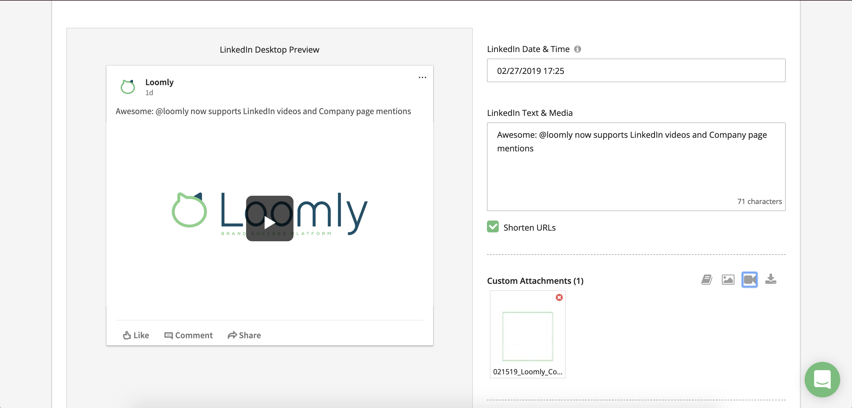 LinkedIn video publishing & Company Pages @mentions are now available to all Loomly users: login now and check them out.