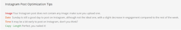 Once you have created your post’s copy and added any attachments, you will be able to post optimization tips displayed at the bottom of the section:
