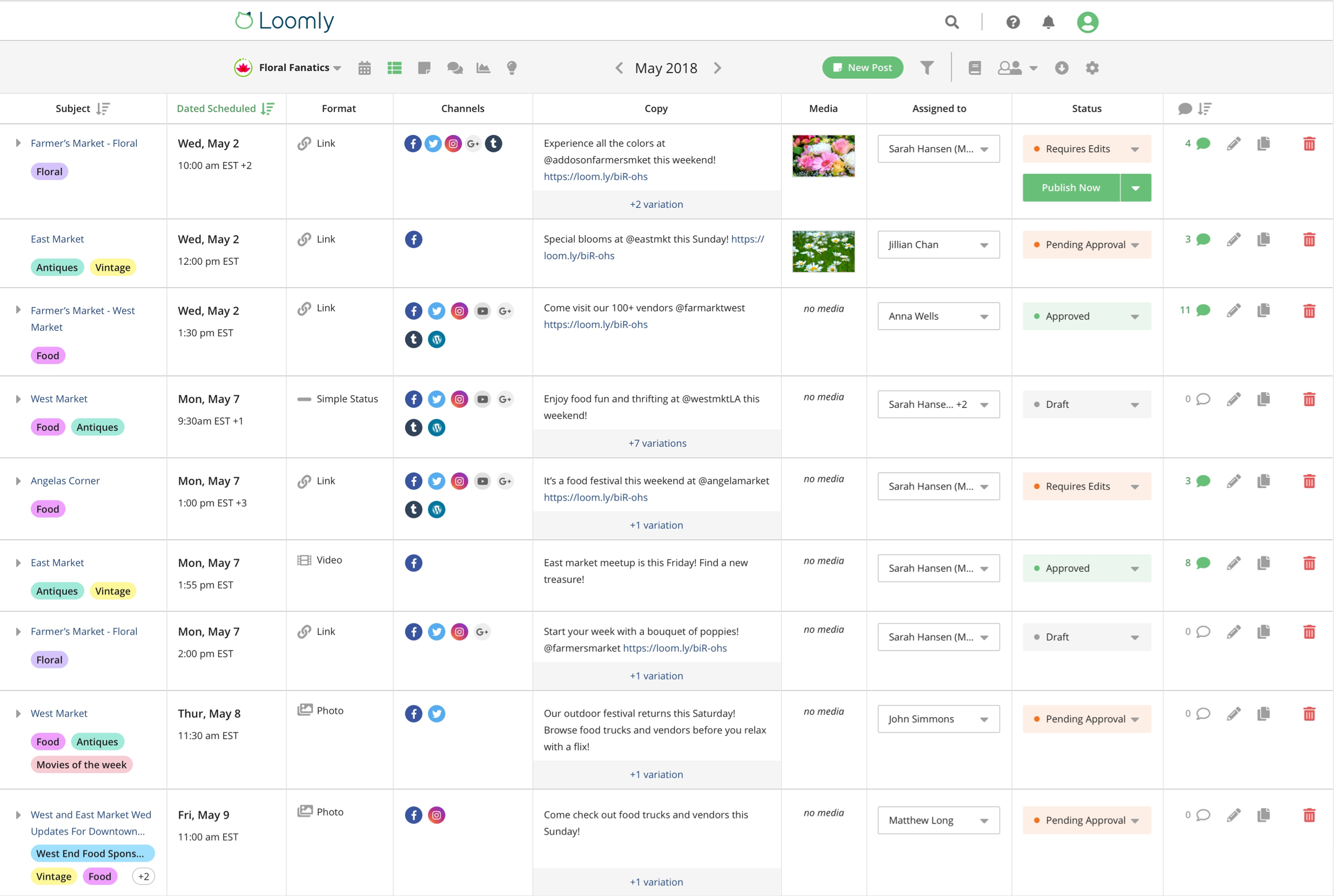 For example, our Loomly tool allows marketing teams and other departments to work together and communicate seamlessly, from an easy-to-use dashboard: