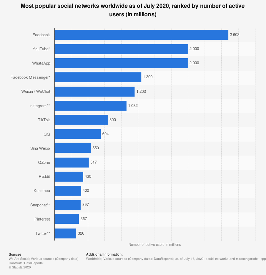 Out of the total population of 7.8 billion, almost 4.57 billion people were active internet users as of July 2020, of which, 3.96 billion were active social media users: