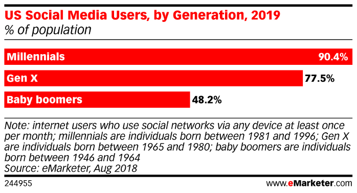 - Around 90% of U.S. businesses were using social media for marketing purposes in 2019.