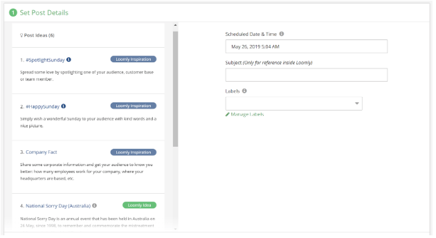 Social media post ideas definition: social media post ideas are a feature of Loomly’s brand success tool.