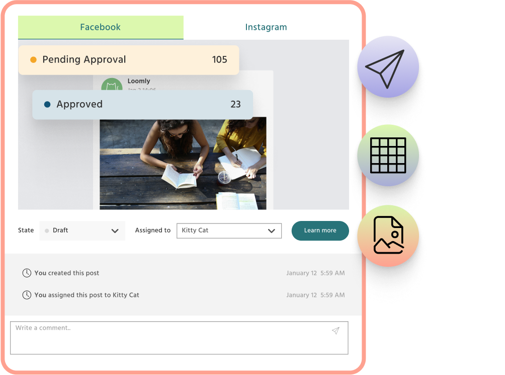 • I love how Loomly is so simple and clean-looking. It is also easy to share content with your clients for approvals!
