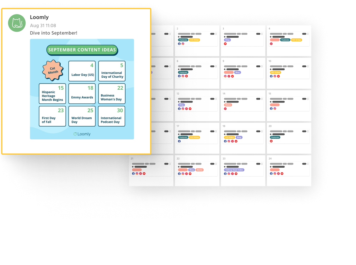 For those of us who like everything organized, Loomly allows you to plan out your Posting days or weeks in advance.